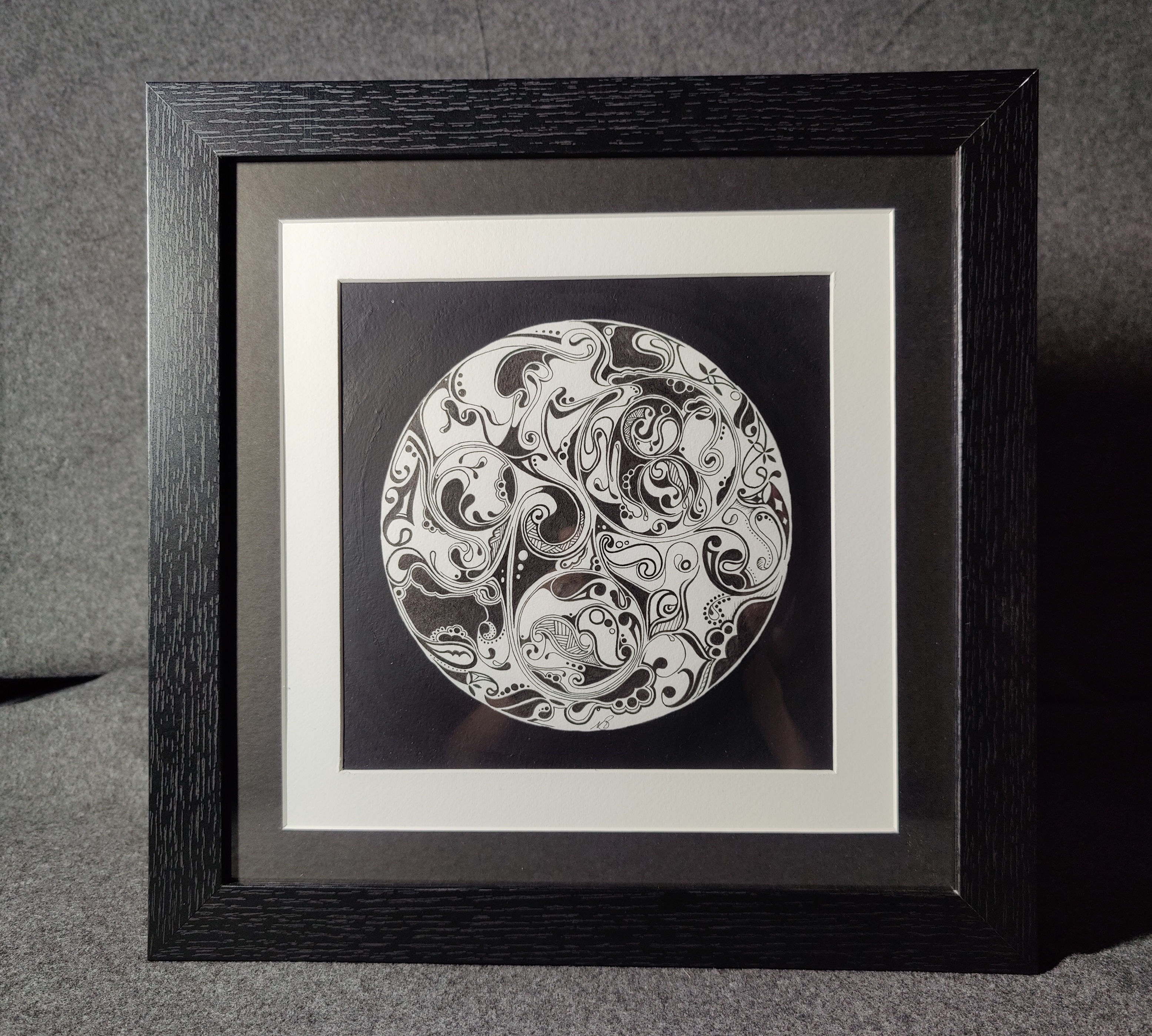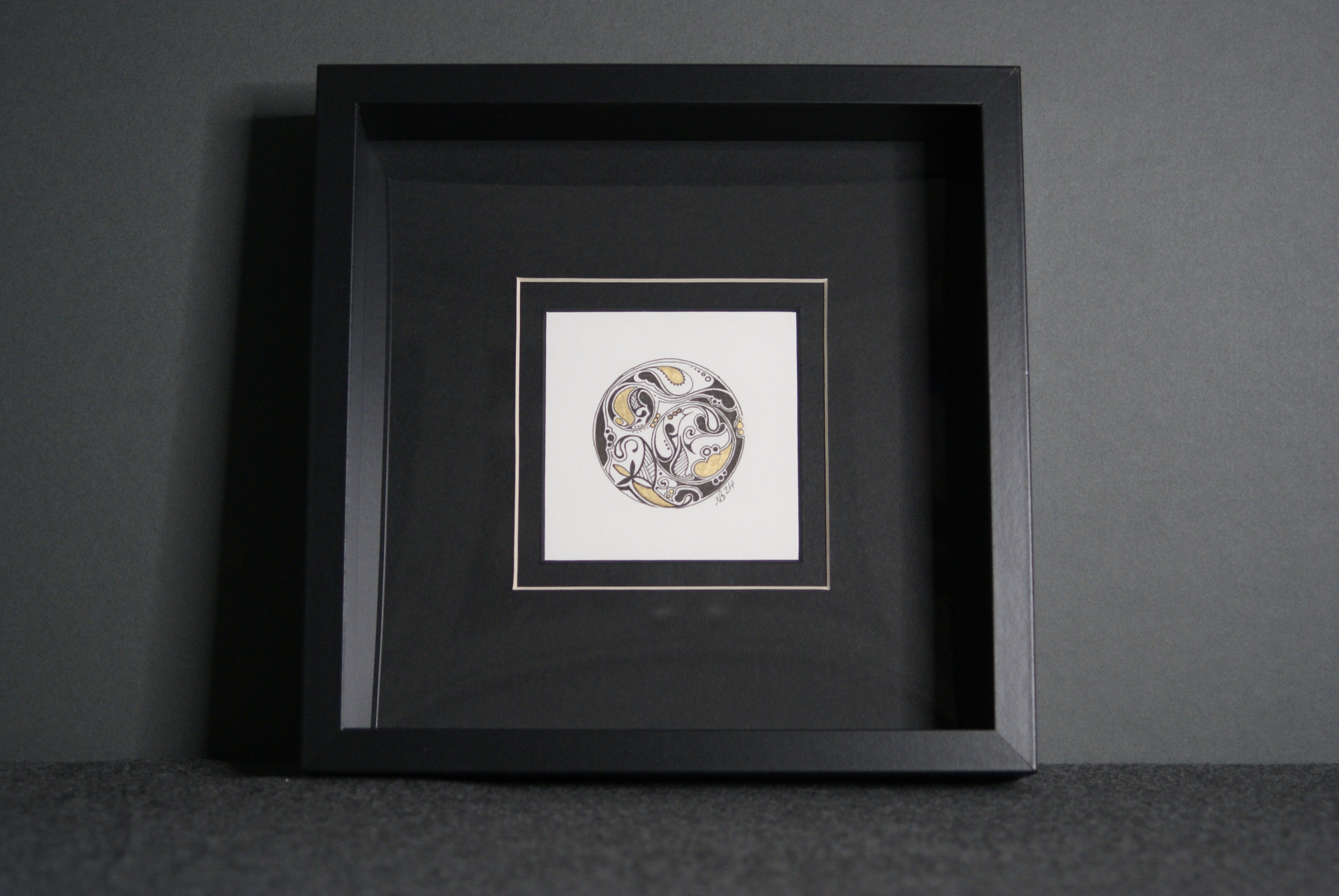 Explore a collection of detailed ink drawings inspired by Celtic motifs and illuminated manuscripts, showcasing craftsmanship and intricate design.